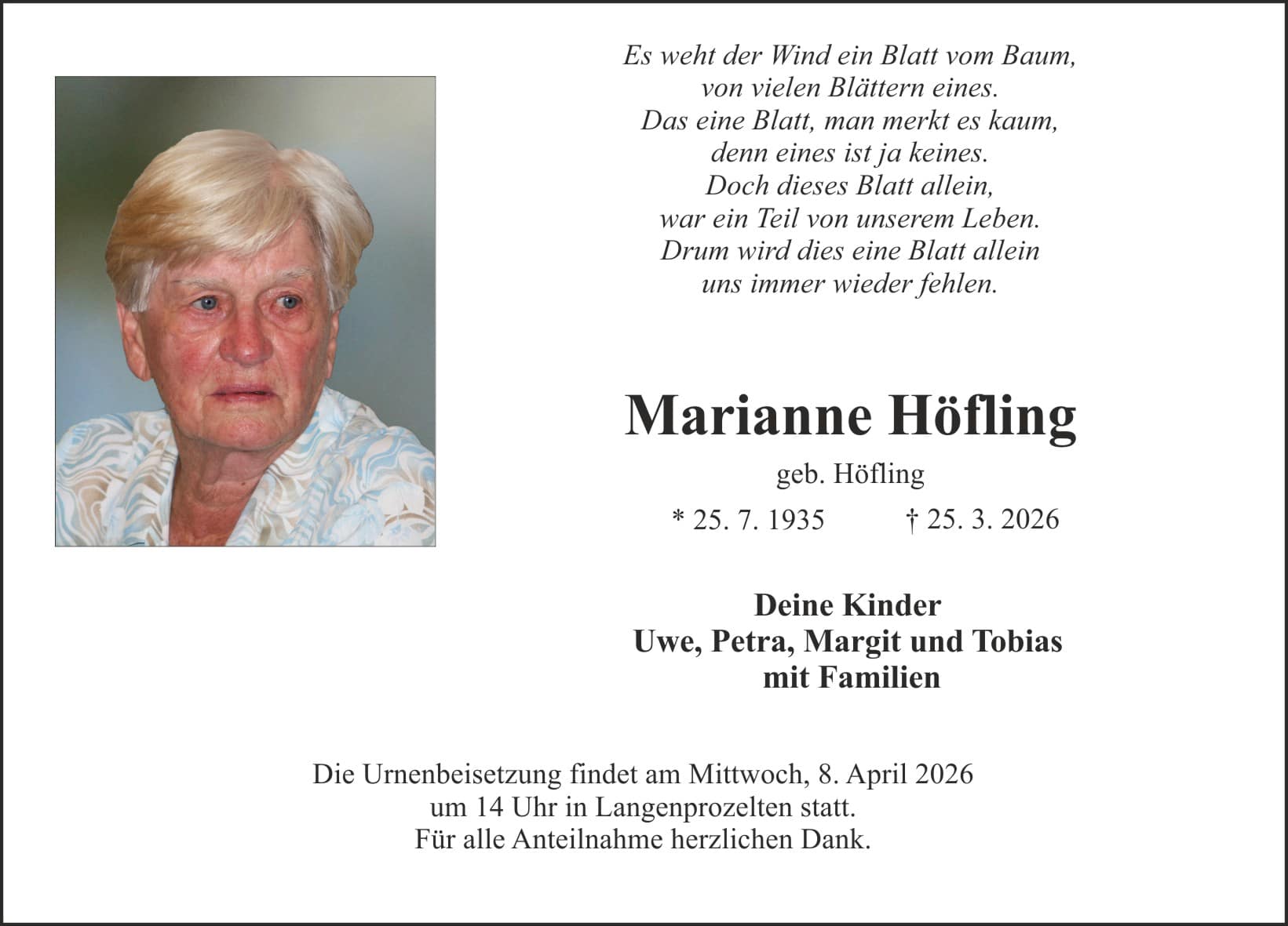 Aktuelle Sterbefälle aus Main-Spessart