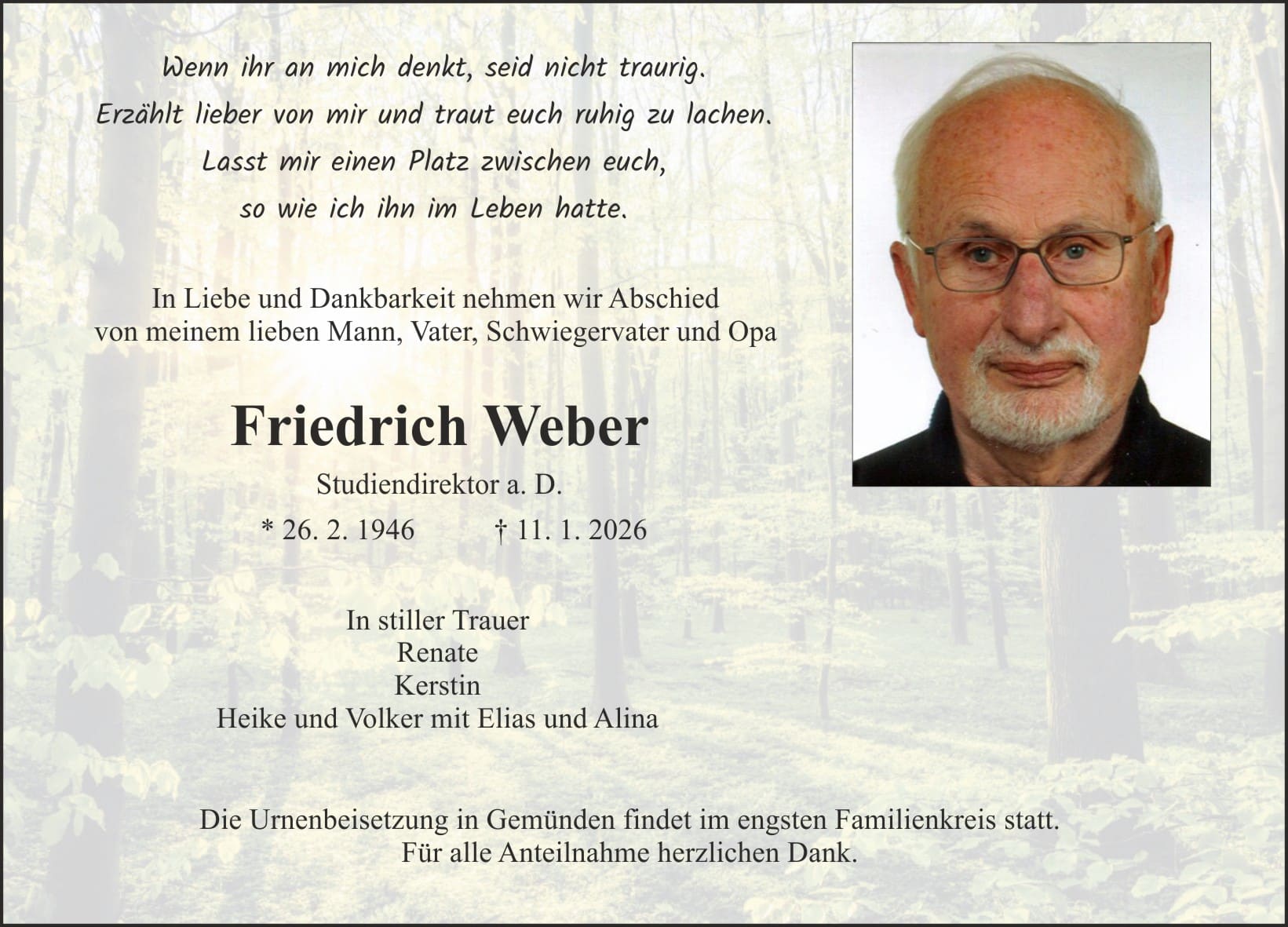Informationen zur Trauerfeier
