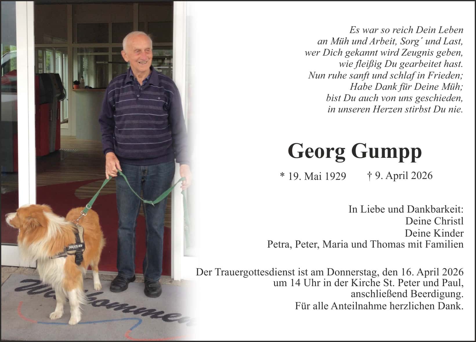 Beisetzungsdatum: Do., 16.04.2026, 14:00 Uhr