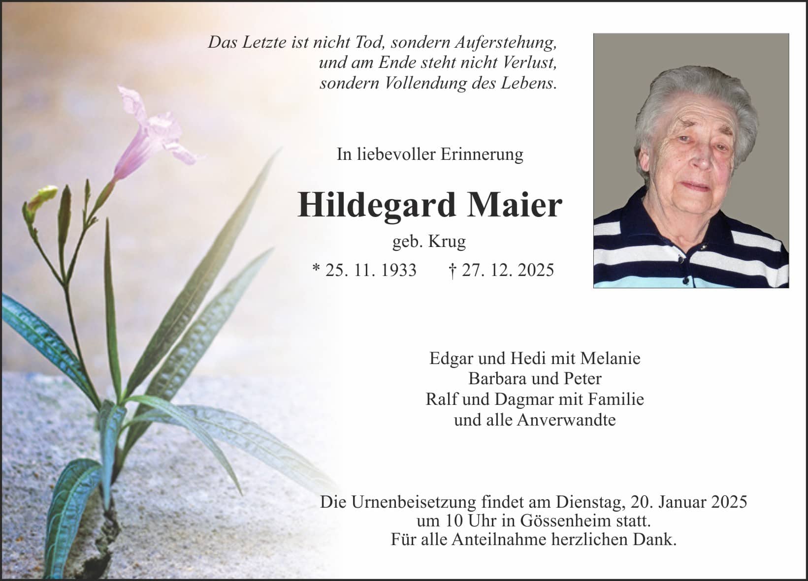 Aktuelle Sterbefälle aus Main-Spessart
