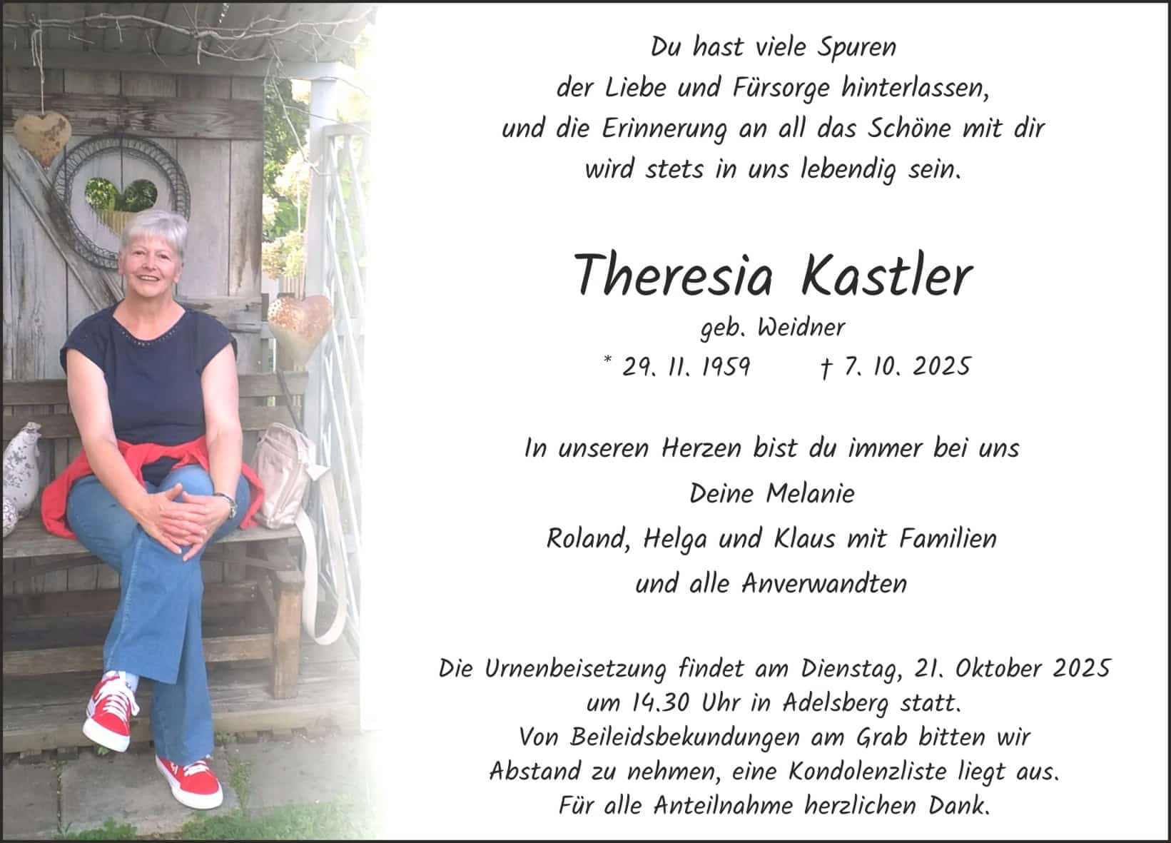 Beisetzungsdatum: Di., 21.10.2025, 14:30 Uhr